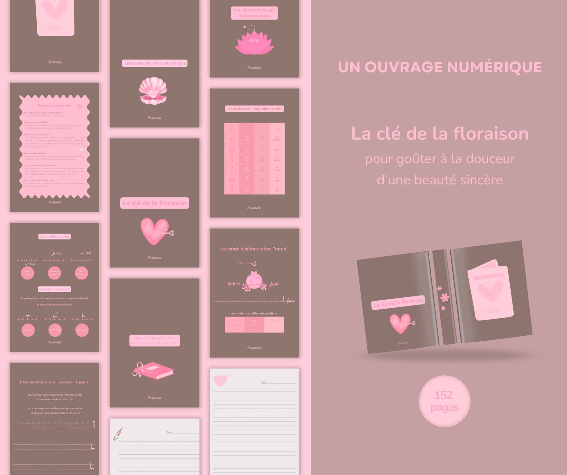 La clé de la floraison est un ouvrage numérique dédié à la beauté sincère : celle qui naît dans le cœur, s’ancre dans l’âme et rayonne naturellement vers l’extérieur. Un chemin doux vers la langue arabe, la science apaisante et une transformation intérieure qui se cultive jour après jour, dans la douceur et la constance.